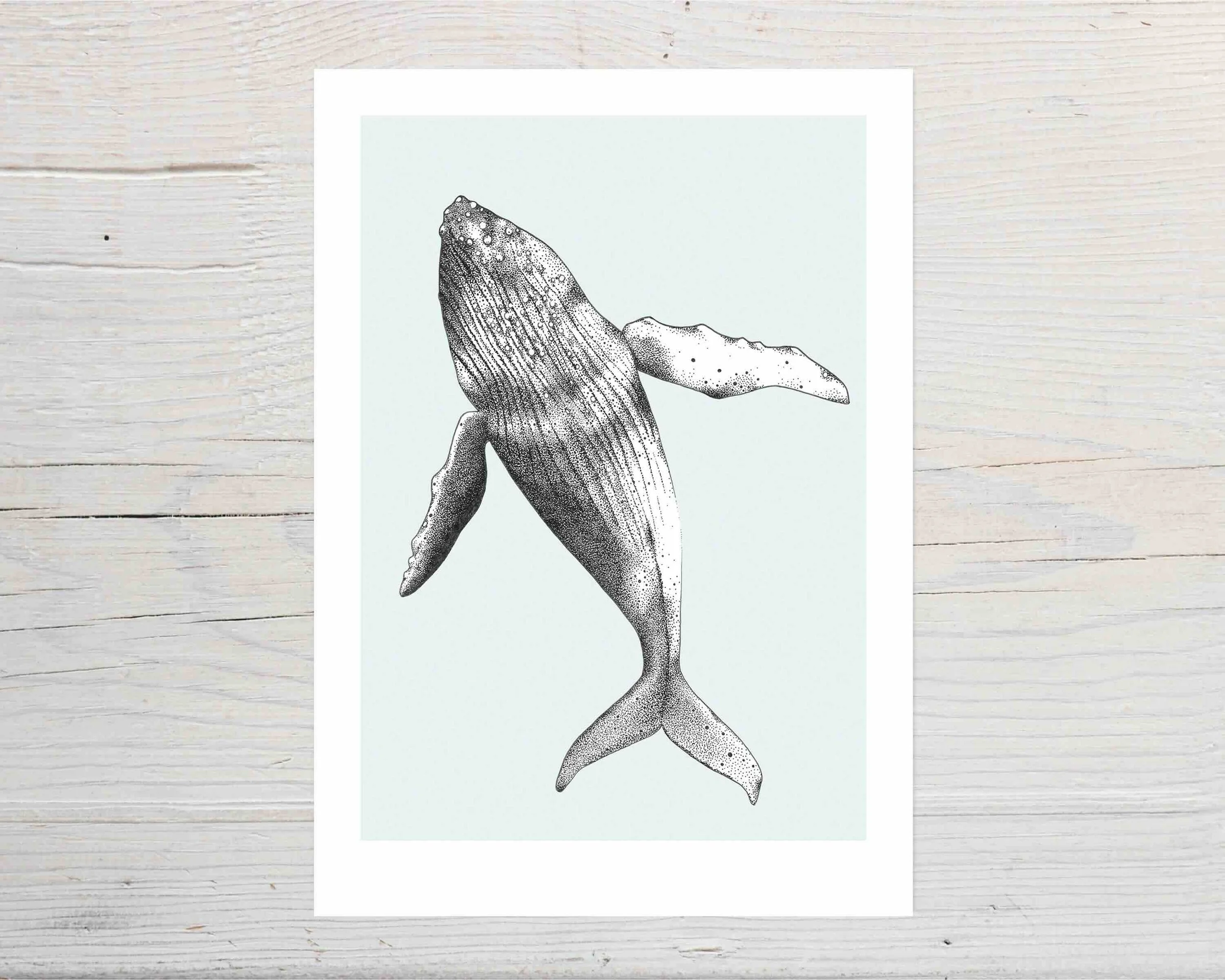 My hand drawn “Dancing Whale” illustration has been printed with a pale blue background and a white border. Each print has been individually signed by me on the front in pencil.